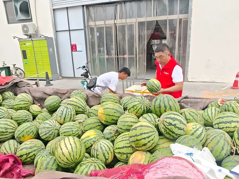 了解到這一情況后,市投集市未來(lái)路市場(chǎng)管理人員立即主動(dòng)上前,與瓜農(nóng)深入溝通,并迅速協(xié)調(diào)安排,將整車2000余斤西瓜轉(zhuǎn)運(yùn)至市投集市未來(lái)路市場(chǎng)內(nèi)避雨銷售。市場(chǎng)不僅免費(fèi)提供惠農(nóng)攤位,還通過(guò)線上線下渠道幫助推廣,號(hào)召市民朋友們愛(ài)心助農(nóng)。